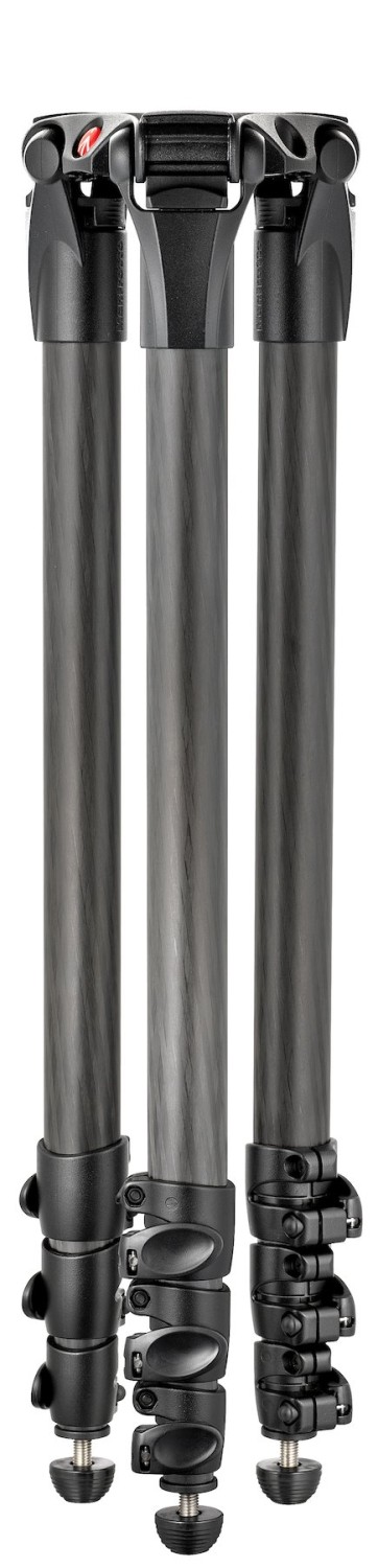 Trípode de vídeo MPRO de fibra de carbono de 3 secciones Muy robusto, compacto y con un alcance impresionante. Nuestro ingenioso trípode de vídeo MPRO de fibra de carbono cumple todos los requisitos de los profesionales que buscan un trípode fiable, versátil y capaz. Gracias a su estructura de cuatro secciones, se ajusta fácilmente y se despliega en un instante, por lo que no perderás tiempo durante la grabación.
