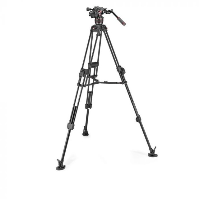 El sistema de vídeo incluye un cabezal de vídeo fluido Manfrotto NITROTECH 608 y patas de trípode 645 Fast Twin fabricadas en aluminio