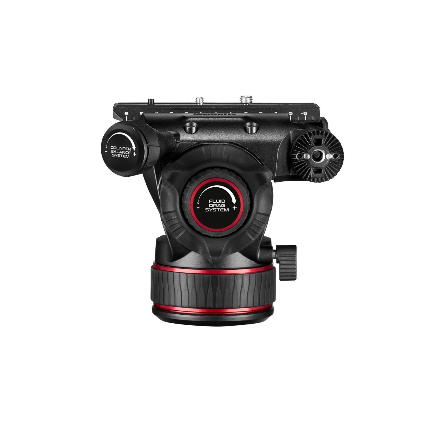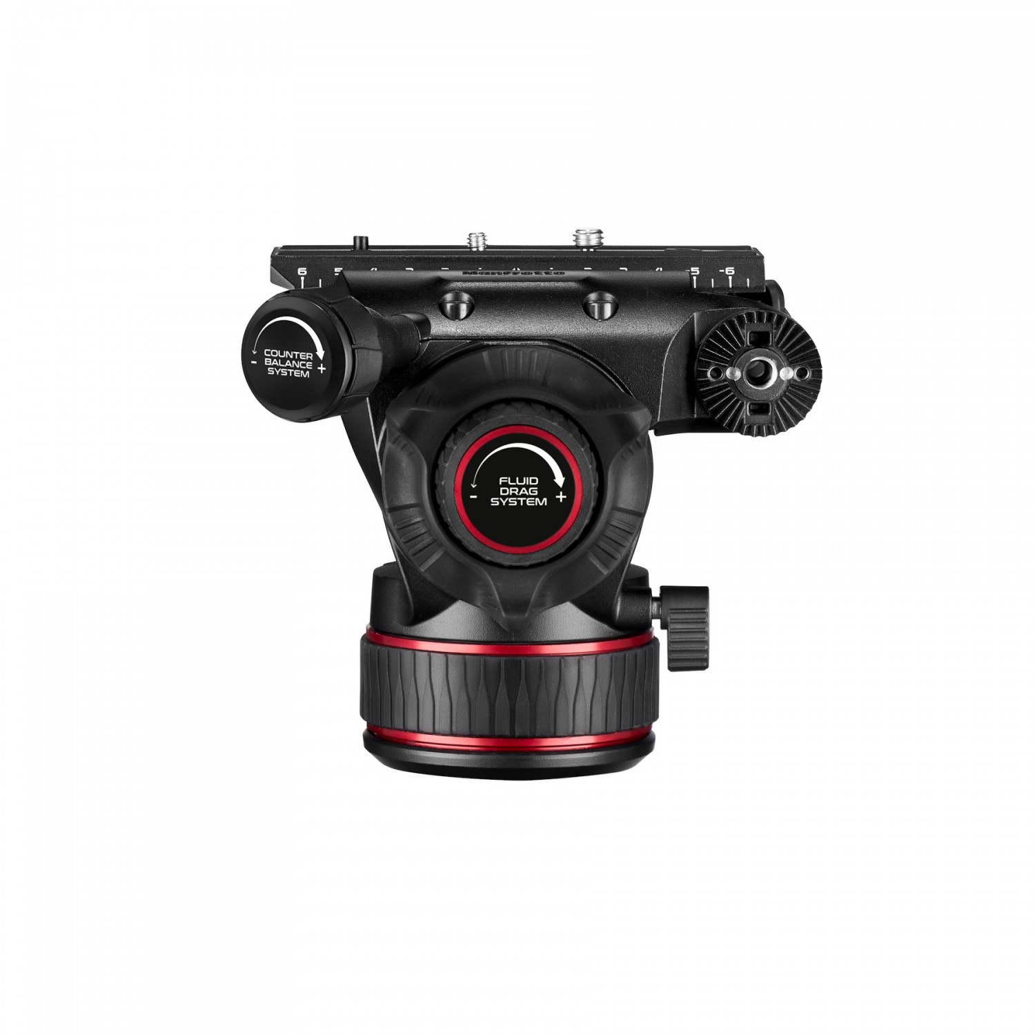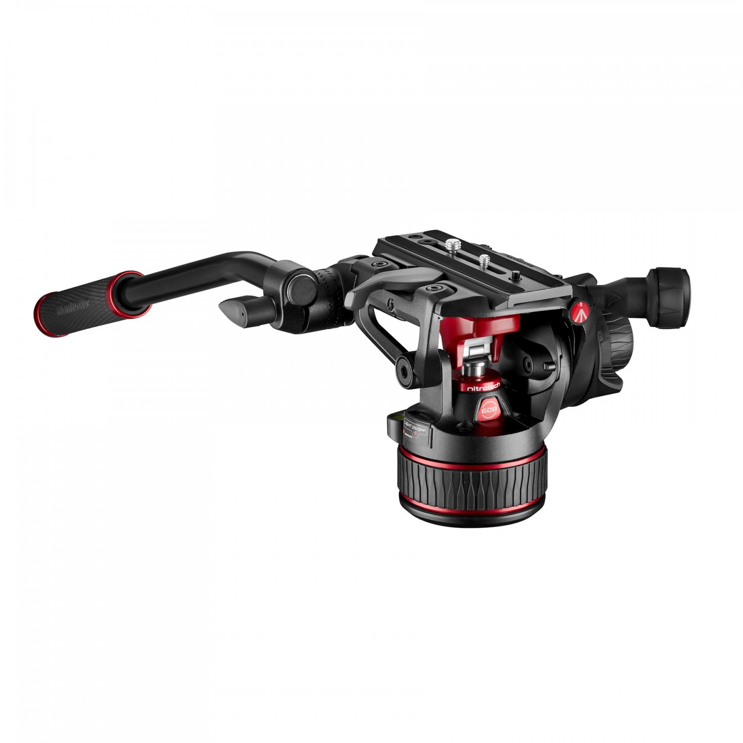 El cabezal también está equipado con un conector Easy Link de 3/8” provisto de sistemas antirrotación, tanto para la fijación de brazos Manfrotto equipados con sistema antirrotación como de brazos equipados con pasadores de fijación ARRI. De este modo, es posible instalar de forma segura un monitor externo u otros accesorios. El mecanismo de fijación lateral de la placa de montaje rápido permite fijar la cámara de forma segura, rápida y sencilla. El cabezal NITROTECH cuenta con una base plana con rosca estándar de 3/8”, que resulta muy versátil para diversas combinaciones de soportes (trípode, slider, brazo o grúa).