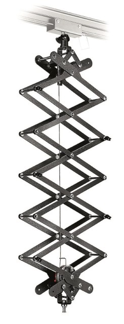 Este es el pantógrafo Manfrotto FF3512N86 con cable de acero. El pantógrafo está fabricado en aluminio según la norma DIN 15560-46. Las fijaciones en ambos extremos del pantógrafo son de 5/8" (16 mm) (hembra superior, macho inferior). La capacidad de carga la garantiza un cable de acero de 2 mm de diámetro. El pantógrafo se extiende desde una longitud cerrada de 27 cm hasta una longitud máxima de 200 cm.