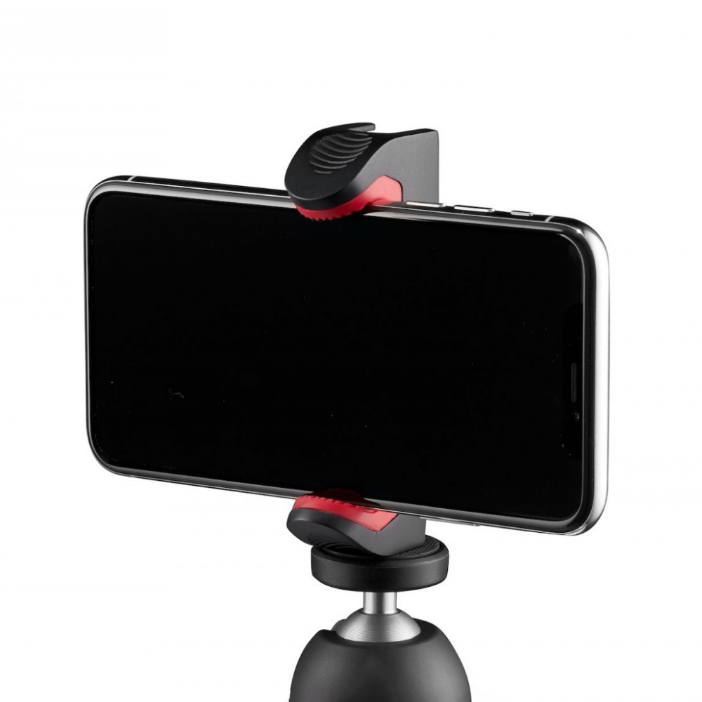 La abrazadera Manfrotto PIXI está diseñada para fijar de forma segura cualquier smartphone con un ancho de entre 60 mm y 104 mm a cualquier tipo de soporte, como por ejemplo el minitrípode PIXI. La abrazadera cuenta con dos roscas de 1/4" en el lateral y en la parte inferior, lo que permite utilizarla tanto en modo retrato como en el clásico modo paisaje. En la parte superior hay un práctico soporte para fijar luces LED, micrófonos u otros accesorios. La palanca de seguridad Y-Lock garantiza una sujeción segura del teléfono y facilita la captura del mejor contenido. El soporte no es compatible con el kit de trípode Compact Action.