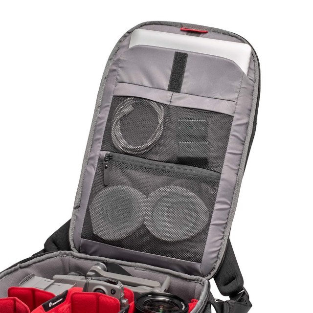 La mochila para cámara Manfrotto PRO Light Backloader S es una mochila profesional diseñada específicamente para ofrecer una protección inigualable del equipo. Ideal para cualquier fotógrafo o cineasta profesional. Las mochilas PRO Light incorporan el nuevo sistema de protección M-Guard™, diseñado y probado en laboratorio para garantizar el máximo nivel de protección y resistencia a los impactos, especialmente en los compartimentos interiores, donde la protección es más importante. Los separadores M-Guard™ están fabricados con espuma EVA de alta densidad, que proporciona una amortiguación excepcional de los impactos al tiempo que mantiene un perfil superfino. SAS-TEC, espuma viscoelástica con memoria y resistencia multipropósito, añade además un refuerzo estructural en la parte inferior de la mochila que proporciona propiedades adicionales de amortiguación de impactos. Para una experiencia aún más tranquila, se puede utilizar un candado homologado por la TSA para asegurar el cable de acero y cerrar el compartimento principal. La Light Backloader cuenta con un acceso trasero seguro a un compartimento para la cámara totalmente acolchado con un interior personalizable. Para una experiencia fotográfica sin preocupaciones, la mochila está equipada con espacio interior para 2-3 cámaras sin espejo con varios objetivos. También existe la posibilidad de dividir el espacio interior para separar el equipo de los objetos personales. Las separaciones son ajustables según las necesidades. El acceso superior sirve como alternativa para acceder a la cámara o el objetivo que más se utiliza. En la parte delantera hay un compartimento modular para pequeños accesorios y objetos personales, así como espacio para un portátil de hasta 15 pulgadas. La Backloader está equipada con un sistema de sujeción bilateral para trípodes de viaje, una correa pectoral ajustable para un mejor transporte y una funda para sol y lluvia DuoFace, que repele la humedad y refleja la luz solar, de modo que el equipo se mantendrá seco y fresco durante todo el día. La mochila está fabricada con tejido RipStop de nailon/poliéster repelente al agua con hilos de refuerzo, para lograr un equilibrio entre ligereza, un aspecto único y un rendimiento de gran capacidad. Gracias al uso de Duraflex®, cremalleras YKK®, refuerzos y cordones de ajuste, la mochila es extremadamente ligera y lo suficientemente resistente como para soportar incluso el uso más intenso y garantizar la protección a largo plazo de una gran cantidad de equipamiento.