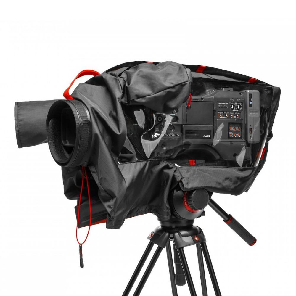 Cubierta del elemento de la cámara Pro Light RC-1 para PDW-750 y PXW-X500 Si necesitas proteger tu videocámara de gran tamaño de la lluvia y otras inclemencias meteorológicas, no busques nada más que esta funda impermeable Manfrotto Pro Light Camera Element. El mal tiempo no tiene por qué significar que tus planes deban cancelarse. Esta protección impermeable contra la lluvia resiste sin problemas incluso el aguacero más intenso. Fabricada en material RipStop. Podrás acceder fácilmente a los controles de la cámara a través de los paneles de poliuretano termoplástico (TPU), por lo que no tendrás que preocuparte por no poder capturar la toma perfecta. La abertura en la parte inferior de la videocámara no solo permite la circulación del aire, sino que también te ofrece la posibilidad de acoplar un trípode. De este modo, tus imágenes se mantendrán estables y fluidas, estés donde estés y sin importar el tiempo que haga. También es ideal como funda para proteger tu cámara del polvo. Garantiza que la cámara permanezca protegida tanto del polvo como de otros elementos, lo que prolonga su vida útil y la mantiene en el estado en el que la dejaste.
