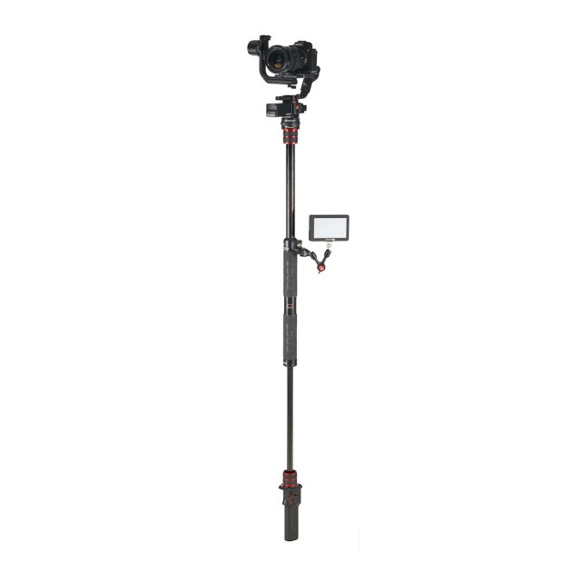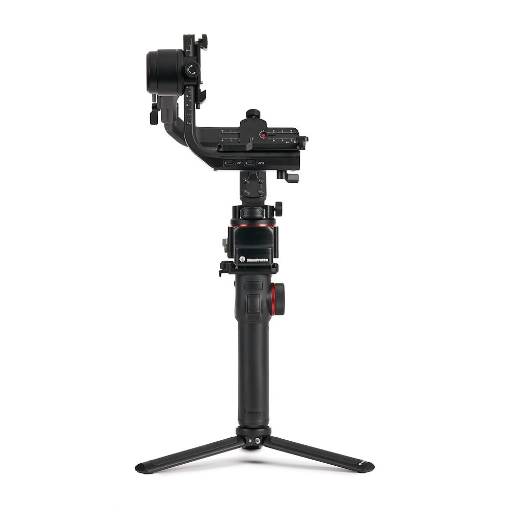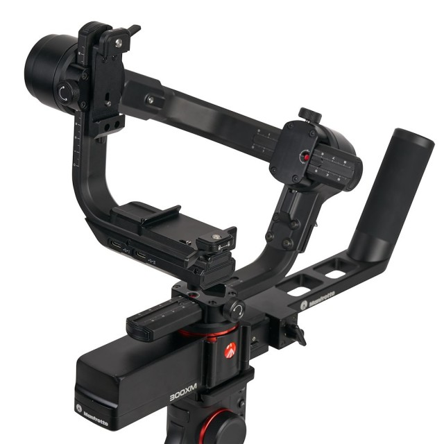 El estabilizador modular profesional de 3 ejes Manfrotto MVG300XM es un estabilizador manual modular de alta gama diseñado para cámaras profesionales que utilizan cámaras CSC y DSLR con un peso de hasta 3,4 kg (7,5 lb). Su diseño modular incluye una empuñadura extraíble que también funciona como mando a distancia, lo que permite un control flexible en diferentes posiciones y estilos de grabación. La empuñadura del estabilizador está equipada con una pantalla LCD táctil, un joystick y un botón multifunción que facilitan el acceso a los ajustes, los movimientos del estabilizador y el control del enfoque.