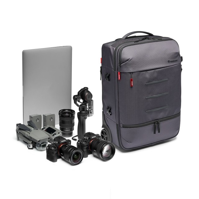 La Manfrotto MB MN-R-RN-50 Manhattan Runner-50 es una maleta con ruedas versátil diseñada para fotógrafos que utilizan cámaras réflex digitales, cámaras sin espejo y drones, y que viajan con frecuencia. Combina la funcionalidad de una maleta fotográfica y una maleta de viaje, y está equipada con un forro extraíble Flexy Camera Shell que se puede convertir en mochila, un compartimento especial para el portátil, una funda repelente al agua y un innovador espacio de almacenamiento para el trípode y los accesorios, lo que permite viajar y fotografiar con total comodidad.