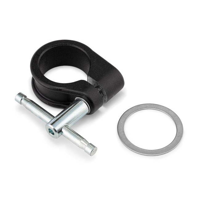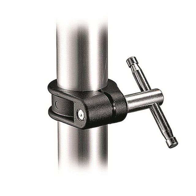 La abrazadera de seguridad Manfrotto 699 de Ø40 mm es un sistema de seguridad secundario diseñado para soportes de altavoces y trípodes, que evita que las partes superiores del soporte se caigan accidentalmente al ajustar la altura.
