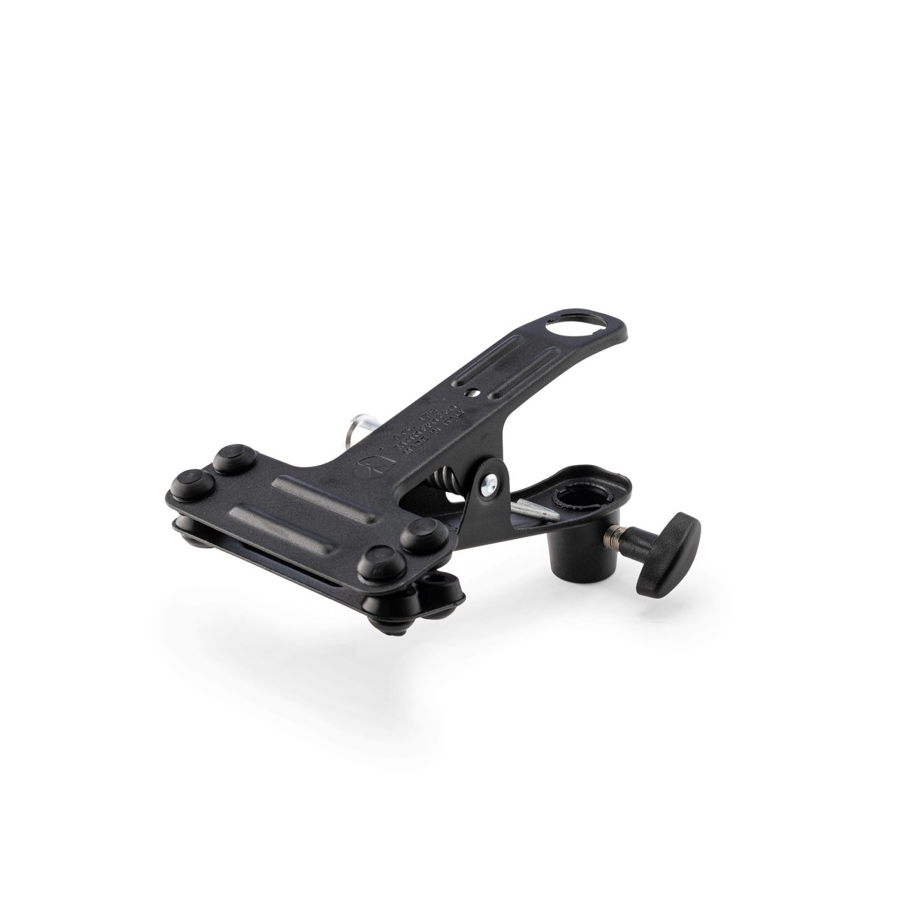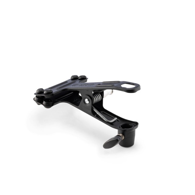 La Manfrotto 175Z Spring Clamp es una resistente abrazadera de resorte de acero italiano que pesa 320 g y se adapta a barras, tubos, estantes o soportes de hasta 40 mm de grosor, proporcionando al instante un pivote de 15,9 mm (5/8″ Baby) con rosca interna de 1/4″-20 en una de las asas, lo que la convierte en la ayuda perfecta para montar pequeñas luces, cámaras, reflectores, fondos o incluso otras pinzas, tanto en el estudio como en exteriores.