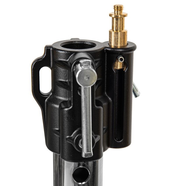 El soporte Manfrotto 083NW Wind Up Stand combina una resistencia extrema con un manejo fluido y preciso. Su columna dentada patentada con manivela de seguridad eleva y baja cargas de hasta 45 kg sin caídas bruscas, mientras que su estructura de dos piezas de acero cromado (diámetro 55 mm + 45 mm) se extiende hasta una altura de trabajo de 247 cm. Una pata de nivelación ajustable garantiza una alineación vertical perfecta en suelos irregulares y la parte superior universal ofrece un soporte junior de 28 mm, un pivote baby de 16 mm y una rosca de 3/8″ para una compatibilidad total.