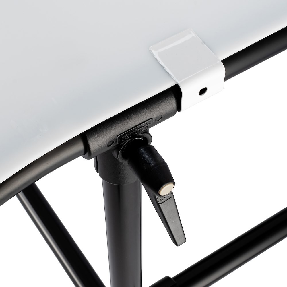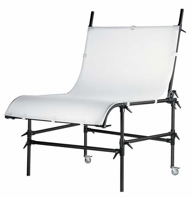 La Manfrotto 220B es una mesa estándar de gran formato para fotografía de naturaleza muerta, diseñada para fotógrafos profesionales de productos y de comercio electrónico. Su robusto marco de aluminio negro, de 200 × 122 cm, soporta un panel de metacrilato blanco translúcido sin juntas, que puede iluminarse desde abajo o desde atrás para crear un fondo limpio de alto contraste o una iluminación suave sin sombras. El panel trasero se puede inclinar desde la posición horizontal hasta la posición totalmente vertical (altura de 193 cm) y a cualquier ángulo entre ambas, lo que permite capturar tanto imágenes planas como dramáticas de productos desde una perspectiva elevada. Su capacidad de carga de 15 kg soporta fácilmente cristales pesados, aparatos electrónicos o varios objetos, mientras que las cintas de velcro incluidas mantienen el fondo o los accesorios en su sitio. Para facilitar su desplazamiento por el estudio, se pueden añadir juegos de ruedas opcionales (165 o 109).