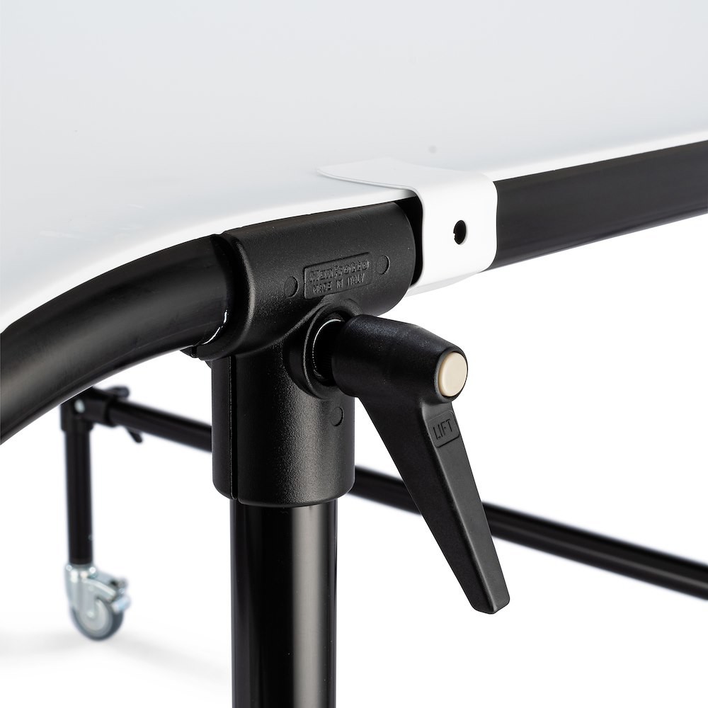 La mesa para naturaleza muerta Manfrotto 220B Black es una mesa fotográfica profesional de 200 × 122 cm con una superficie transparente de plexiglás, montaje sin herramientas, inclinación ajustable de la parte trasera (hasta una altura de 193 cm), una capacidad de carga de 15 kg y ruedas opcionales: la solución ideal para fotografiar productos, alimentos y envases con un control perfecto de la iluminación trasera o frontal.