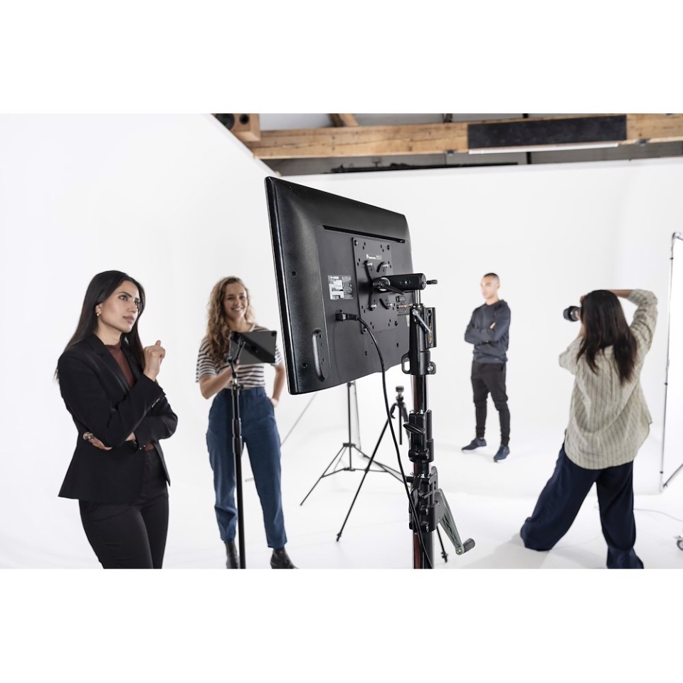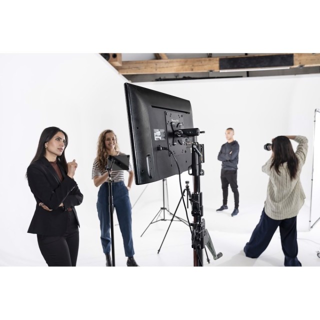 El soporte para monitor TetherGear VESA es la solución ideal para fotógrafos, ya que es compatible con los estándares de fijación VESA de 75x75 mm y 100x100 mm. El sistema soporta hasta 30 kg y ofrece una fijación ideal y segura para un monitor externo o una pantalla de televisión.