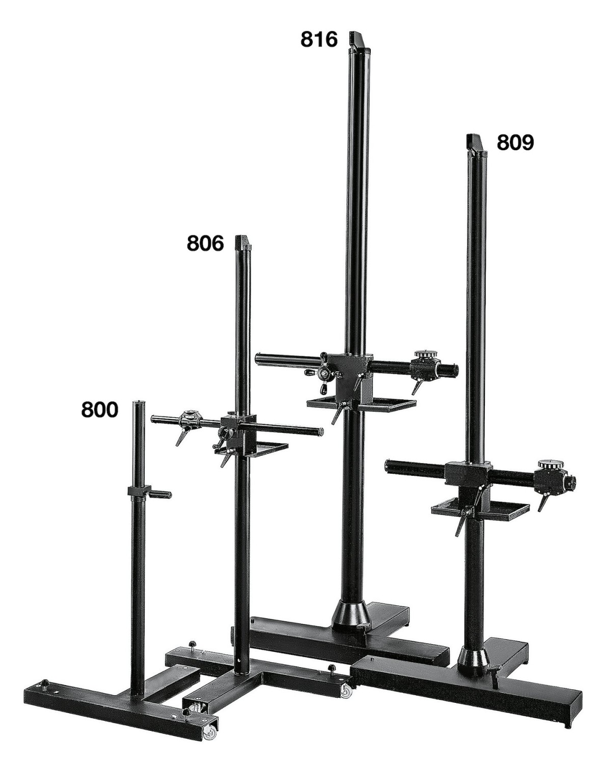 El Manfrotto 816 (Super Salon 280) es el buque insignia de los trípodes de estudio profesionales para cámaras, fabricado para ofrecer una precisión y estabilidad absolutas al fotografiar con pesados equipos de formato medio, técnicos o DSLR/sin espejo. La columna anodizada en negro, con un diámetro de 10 cm, alcanza una altura de trabajo de 260 cm (284 cm en total) y se asienta sobre una base de fundición en forma de «T» ultraestable, provista de grandes ruedas de giro suave que se bloquean al instante con un solo pedal. El travesaño horizontal de 100 cm de longitud se desplaza 62 cm en sentido vertical mediante un engranaje suave y está perfectamente equilibrado, por lo que se puede ajustar fácilmente en altura con un solo dedo, incluso cuando lleva montados 13 kg.