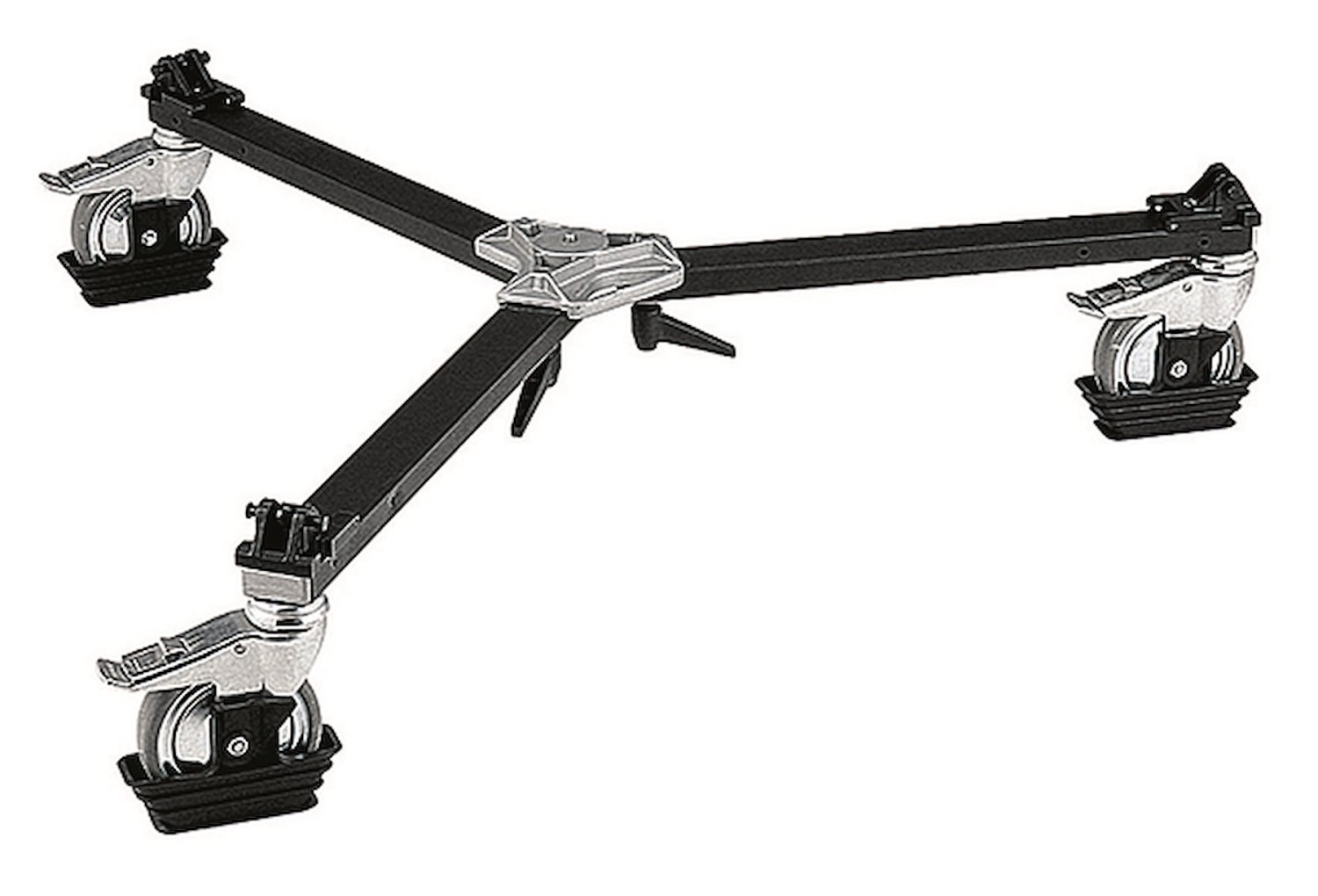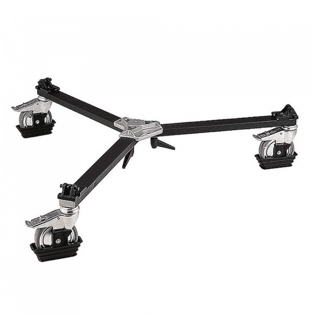 Vídeo Dolly Un carro seguro y robusto que garantiza una estabilidad absoluta. Este práctico Video Dolly está diseñado para mantener incluso el equipo más pesado firmemente en su sitio, lo que lo convierte en un elemento imprescindible en cualquier rodaje. Está fabricado en aluminio resistente, lo que garantiza una larga vida útil. Cada rueda cuenta con un freno independiente, lo que resulta ideal para garantizar la seguridad y la estabilidad. A pesar de su impresionante capacidad para soportar equipos pesados, este carro es compacto y fácil de plegar. Compatible con los trípodes Manfrotto 545B, 545GB, 546B y 546GB.