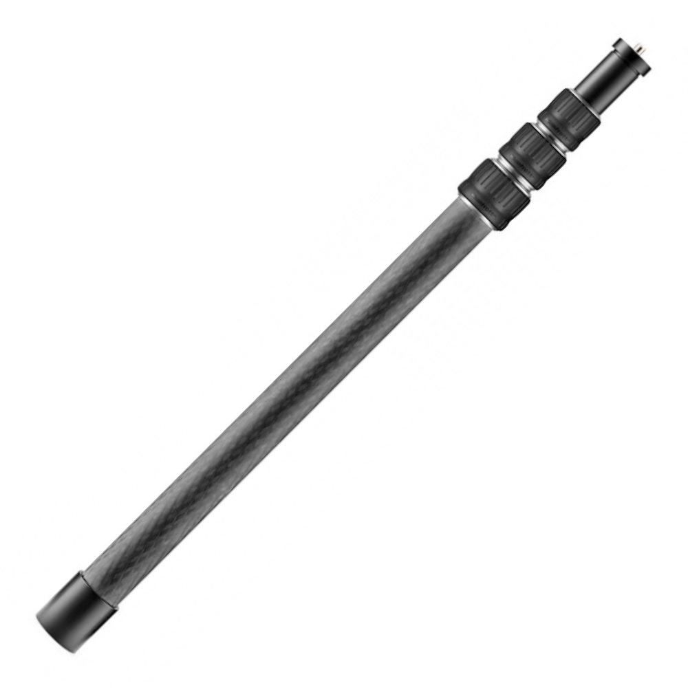 El brazo extensible VR Medium de fibra de carbono está fabricado con fibra de carbono de alta calidad, lo que garantiza la máxima rigidez y una ligereza extrema. Con sus 4 secciones, alcanza una altura máxima de 2 m y, cuando está plegado, mide solo 62,5 cm, por lo que es fácil de transportar para tomas de 360°. En su extensión vertical máxima, soporta hasta 2 kg. El brazo cuenta con un adaptador doble intercambiable en la parte superior: con solo atornillar el disco superior, los usuarios pueden cambiar rápida y fácilmente del adaptador de 1" al de 3/8" con conector externo, dependiendo del tipo de dispositivo de 360° que deseen utilizar en la parte superior.