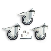 Juego de tres ruedas con adaptador para pie de trípode de 22 mm de diámetro y frenos. Carga máxima de 100 kg.