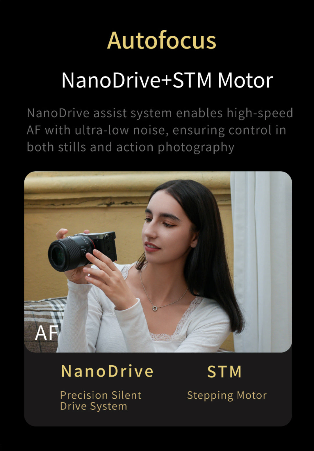 El sistema de enfoque automático STM (motor paso a paso) integrado garantiza un enfoque rápido, fluido y silencioso, por lo que es ideal tanto para la fotografía como para la grabación de vídeo. Su distancia focal de 35 mm ofrece una perspectiva natural, lo que lo convierte en una opción excelente para retratos, fotografía callejera, paisajes y la fotografía cotidiana. El objetivo Meike 35 mm f/1,8, compacto y ligero, es un complemento imprescindible en el equipo de cualquier fotógrafo con montura E-Mount.