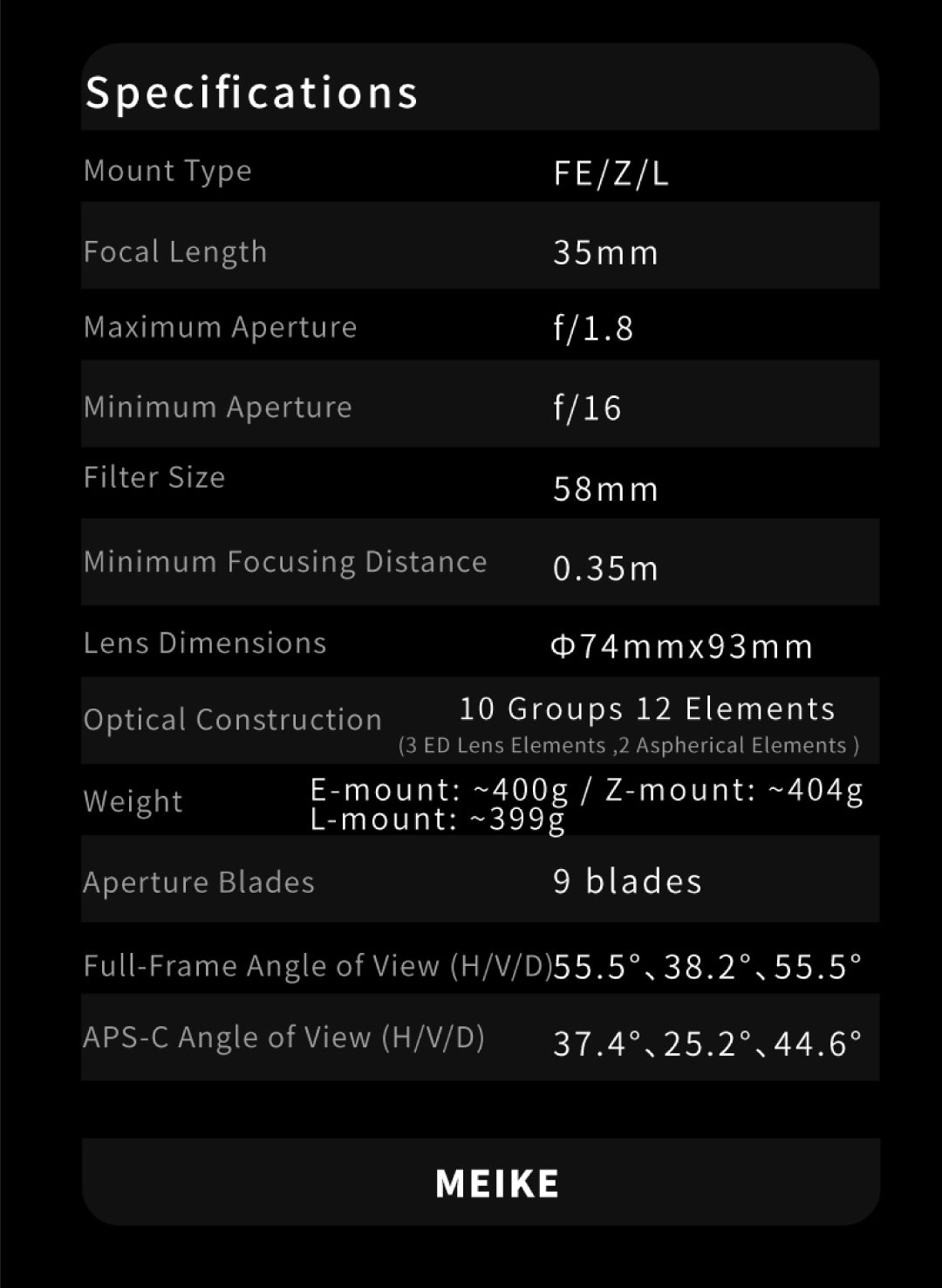 Meike 35mm f1.8 Pro Full Frame Auto Focus STM E