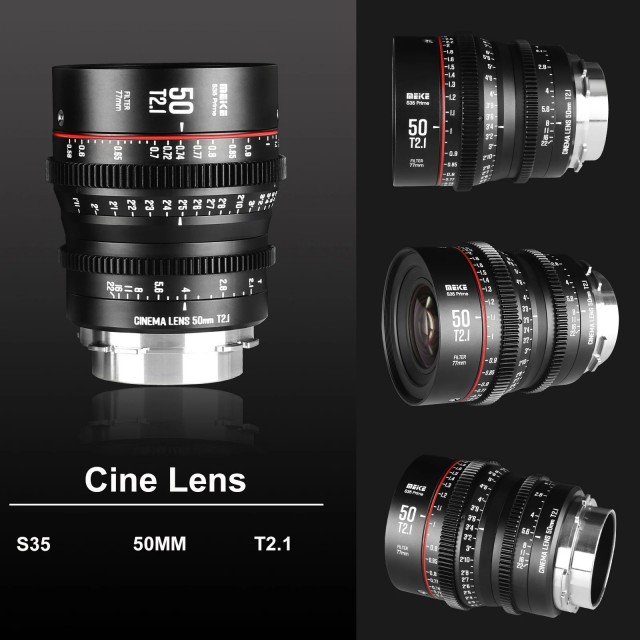 El segundo objetivo cinematográfico de Meike de la nueva serie para cámaras con sensores de formato Super 35 (diámetro de imagen de 33,6 mm). Versión con montura PL.
