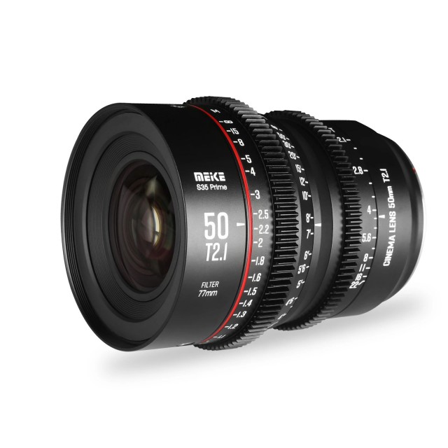 El segundo objetivo cinematográfico de Meike de la nueva serie para cámaras con sensores de formato Super 35 (diámetro de imagen de 33,6 mm). Versión con montura EF.