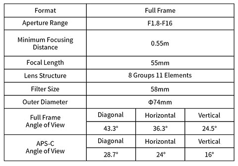 El tratamiento multicapa de doble cara del objetivo, 2 lentes ED, 2 lentes de alta refracción y 1 lente de ultra alta refracción controlan eficazmente la aberración cromática, las imágenes fantasma y los destellos. La distancia mínima de enfoque alcanza los 0,55 m y su capacidad para realizar fotografías macro es igualmente impresionante.