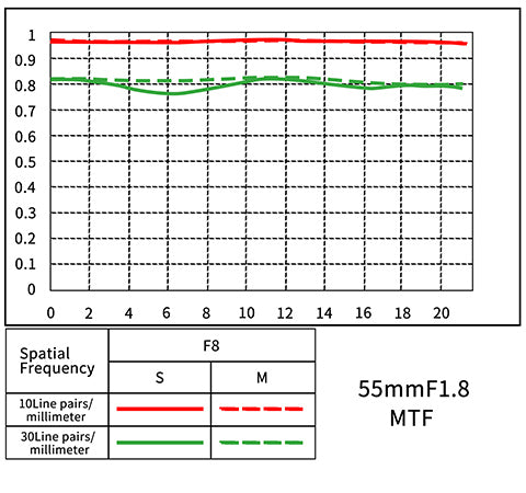 El 55 mm F1,8 es compatible con cámaras de alta resolución y sensores 8K. Es capaz de reproducir cada detalle de la imagen. Su gran resolución satisface las exigencias más elevadas en cuanto a calidad de imagen.
