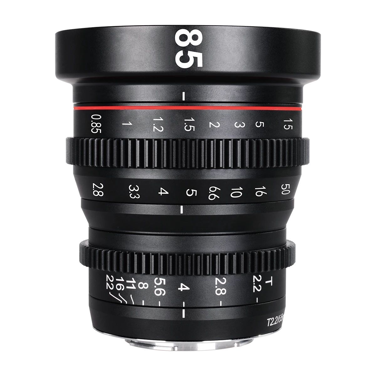 Objetivo cinematográfico totalmente manual con una luminosidad de T2,2 y una distancia focal de 85 mm. El objetivo ofrece una imagen nítida con un mínimo de aberraciones cromáticas y un rendimiento suave fuera del plano de enfoque, un efecto de «respiración» minimizado y un recorrido largo del anillo de enfoque (270°) con dentado M0,8 y marcas precisas (precisión de aprox. 10”; el anillo del diafragma también cuenta con dentado). Variante para montura X Mount.