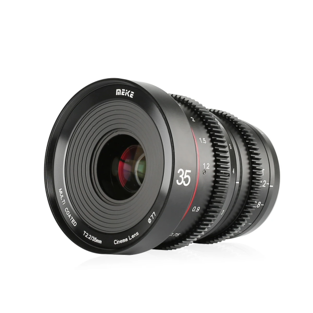 Objetivo cinematográfico totalmente manual con una luminosidad de T2,2 y una distancia focal de 35 mm. El objetivo ofrece una imagen nítida con un mínimo de aberraciones cromáticas y un rendimiento suave fuera del plano de enfoque, un efecto de «respiración» minimizado y un recorrido largo del anillo de enfoque (270°) con dentado M0,8 y marcas precisas (precisión de aprox. 10”; el anillo del diafragma también cuenta con dentado). Variante para montura X Mount.