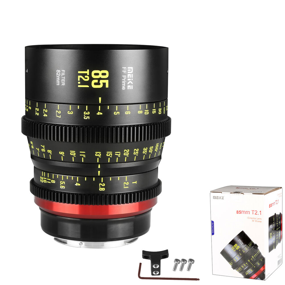 El objetivo Meike 85 mm T2,1 de la serie FF-Prime Cine Series tiene un diámetro de imagen de 45 mm, es compatible con todas las cámaras de formato completo y está disponible en versiones con monturas PL/EF/RF/E/L. Gracias a ello, es compatible con las cámaras DSLM de las marcas Sony, Panasonic, Canon, Sigma y Leica equipadas con sensores de tamaño FF/Super 35/APS-C, así como con las cámaras de cine digital Canon C700, Sony Venice, Alexa LF, Z Cam E2-F6, Mavo LF, etc. Por supuesto, cuenta con un paso de rosca estándar de M0,8 mm en los anillos de enfoque y diafragma para el enfoque lateral. La gama completa prevista de FF-Prime Cine ofrecerá los modelos 16 mm T2,1, 24 mm T2,1, 35 mm T2,1, 50 mm T2,1, 85 mm T2,1, 105 mm T2,1 y 135 mm T2,1.
