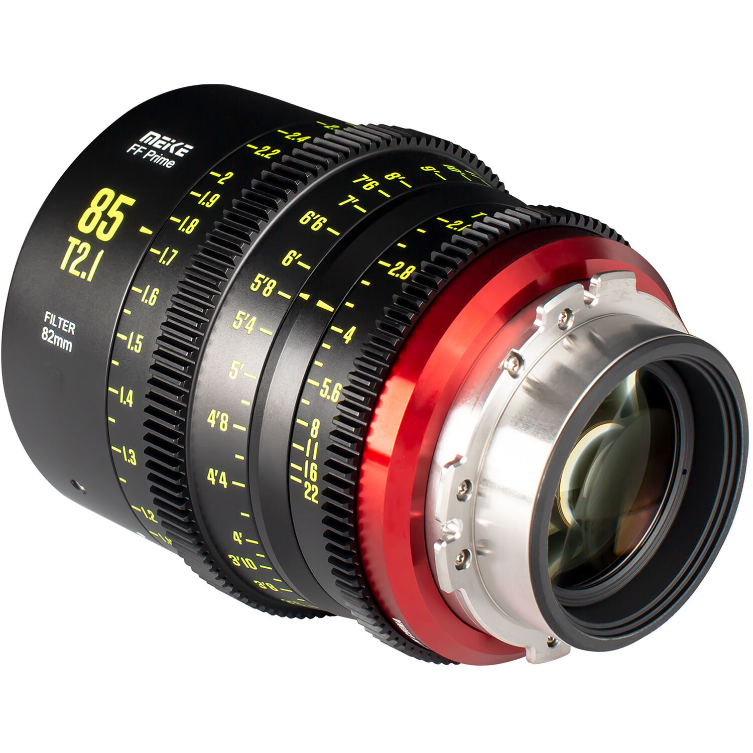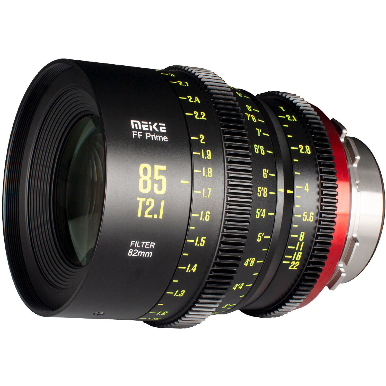 El objetivo Meike 85 mm T2,1 de la serie FF-Prime Cine Series tiene un diámetro de imagen de 45 mm, es compatible con todas las cámaras FF y se suministra en versiones con monturas PL/EF/RF/E/L. Gracias a ello, es compatible con las cámaras DSLM de las marcas Sony, Panasonic, Canon, Sigma y Leica equipadas con sensores de tamaño FF/Super 35/APS-C, así como con las cámaras de cine digital Canon C700, Sony Venice, Alexa LF, Z Cam E2-F6, Mavo LF, etc. Por supuesto, cuenta con un paso de rosca estándar de M0,8 mm en los anillos de enfoque y diafragma para el enfoque lateral. La gama completa prevista de FF-Prime Cine ofrecerá los modelos 16 mm T2,1, 24 mm T2,1, 35 mm T2,1, 50 mm T2,1, 85 mm T2,1, 105 mm T2,1 y 135 mm T2,1.