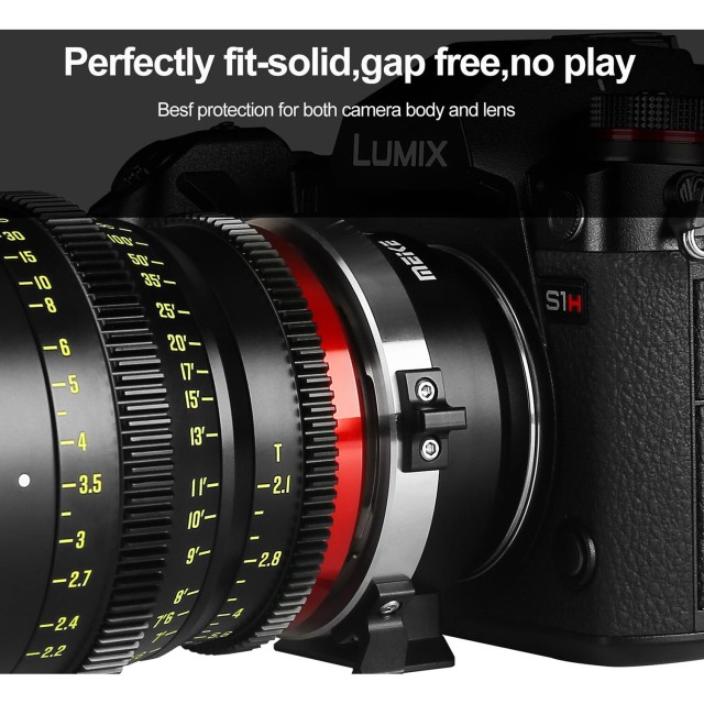 Este adaptador de objetivos de la marca Meike permite utilizar objetivos con montura PL en cámaras con montura Leica L-Mount. El adaptador permite enfocar al infinito y, gracias a su preciso diseño, garantiza una fijación firme del objetivo, sin ningún tipo de holgura. Su especial acabado mate interno garantiza la eliminación de los reflejos.