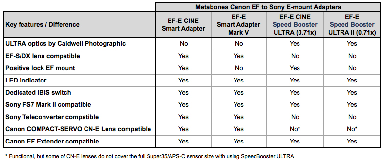 El nuevo adaptador inteligente EF-E Mount «CINE Speed Booster» permite utilizar objetivos Canon EF/EF-S/DX en cámaras Sony con montura E, como por ejemplo la PXW-FS7M2, la PXW-FS5, PXW-FS7, NEX-FS700, NEX-FS100 o A7SII, A7RII, A7II, A7S, A7R, A7. El adaptador tiene una construcción muy robusta, ideal incluso para rodajes exigentes sobre el terreno, y está equipado con un bloqueo para una fijación de máxima seguridad de los objetivos EF. El sistema óptico Speed Booster aumenta la luminosidad de los objetivos en un paso de diafragma, mejora su función de transmisión y reduce la distancia focal.