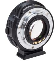 Adaptador para montar objetivos Canon EF en cámaras con montura MFT activa y pasiva. Además de adaptar la montura para los objetivos Canon EF, el adaptador también reduce la distancia focal de los objetivos y aumenta su luminosidad. La luminosidad de los objetivos montados aumenta en un paso de diafragma y también mejora la función de transmisión de los objetivos. El adaptador está equipado con electrónica para controlar la apertura de los objetivos a través del cuerpo de la cámara, desde el que también se alimenta. Es compatible con objetivos con estabilización óptica. Es el complemento ideal para los modelos Blackmagic Cinema Camera MFT o Panasonic GH4 y GH5.