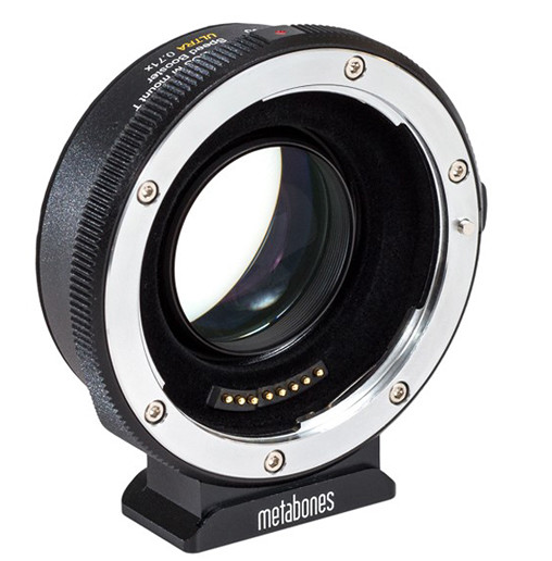 El adaptador Metabones T Speed Booster Ultra 0,71x permite acoplar objetivos Canon EF de formato completo a cámaras con montura Canon EF-M, conservando el rendimiento óptico y la compatibilidad con las funciones electrónicas. Al reducir el círculo de imagen del objetivo de formato completo al tamaño del sensor APS-C, el adaptador reduce eficazmente el factor de recorte a 0,71x y garantiza un aumento de un paso en la apertura, lo que maximiza la captación de luz y el campo de visión.