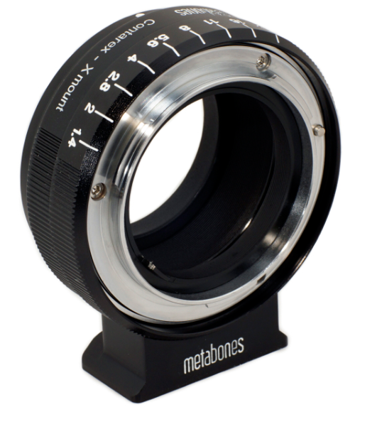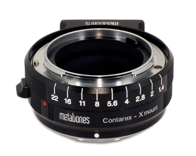 El adaptador Metabones Contarex para montura FUJI X-Mount (negro mate) permite acoplar de forma precisa y fiable los objetivos Contarex a las cámaras con montura FUJI X-Mount. Este adaptador Smart Adapter™, fabricado en latón con recubrimiento cromado, garantiza una conexión firme y sin holgura, es compatible con el control electrónico del diafragma y está equipado con una base para trípode extraíble compatible con las rótulas Arca-Swiss, Markins y Photo Clam.
