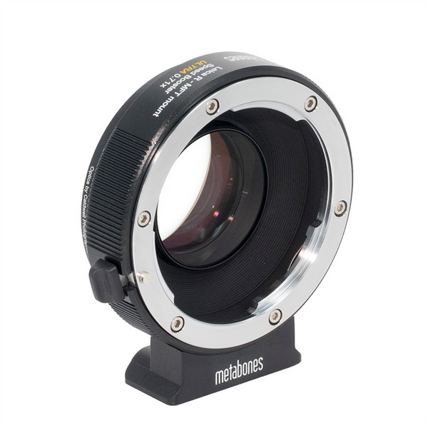 Convierte tus objetivos con montura Leica R en potentes herramientas para cámaras Micro Four Thirds con el adaptador Metabones Leica R - Micro Four Thirds Speed Booster ULTRA 0,71x. Este adaptador aumenta la apertura máxima efectiva en un paso y, al mismo tiempo, amplía el campo de visión del objetivo en 0,71x, lo que resulta ideal para capturar imágenes de gran amplitud con una profundidad de campo impresionante. El Speed Booster cuenta con un diseño óptico de 5 elementos en 4 grupos fabricado por Caldwell Photographic en EE. UU. y utiliza cristal óptico a base de tantalio de índice muy alto, lo que proporciona imágenes nítidas y de alto contraste con una excelente función de transferencia de modulación (MTF).
