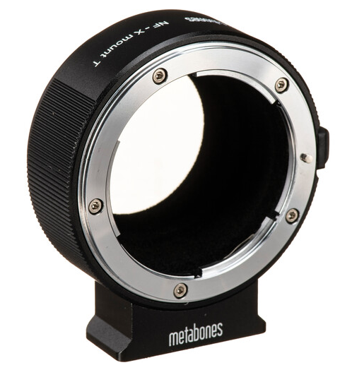 El adaptador Metabones Nikon F a FUJIFILM X-Mount T Adapter II (negro) permite a los fotógrafos acoplar objetivos Nikon F con anillo de diafragma a cámaras con montura FUJIFILM X-Mount, manteniendo el enfoque al infinito. Está fabricado con precisión en latón con recubrimiento cromado, garantiza una conexión firme con un mínimo de reflejos internos y está equipado con una base de trípode extraíble tipo Arca para una sujeción estable.