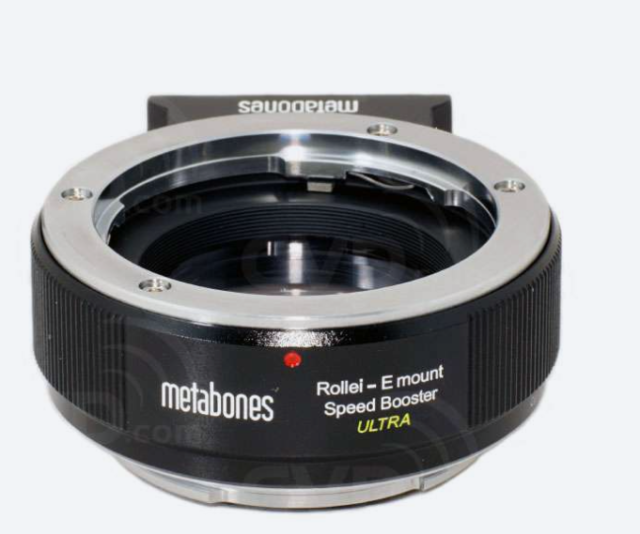 El adaptador Metabones Rollei QBM a montura E de Sony Speed Booster ULTRA 0,71x (negro mate) es un adaptador de objetivos de calidad profesional diseñado para mejorar el rendimiento de los objetivos Rollei QBM en cámaras con montura E de Sony. Con su revolucionario aumento de 0,71x, el adaptador reduce eficazmente el factor de recorte en las cámaras sin espejo de formato DX, lo que proporciona un campo de visión más amplio e imágenes más luminosas al aumentar la apertura máxima en 1 paso.