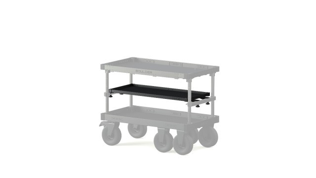 La bandeja Mid Level Tray, disponible en tamaño estándar y XL, se integra perfectamente en el sistema Boulder Camera Cart, lo que la convierte en una mejora imprescindible para equipos de cámara, empresas de alquiler y profesionales de la producción, que apreciarán su eficacia y modularidad.