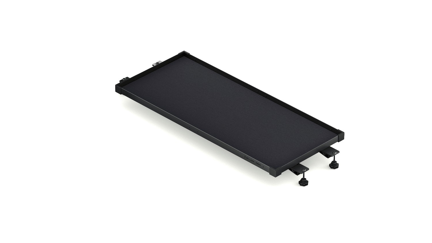 Cuando se coloca en la posición más alta, la bandeja funciona como un estante delgado y práctico —ideal para guardar herramientas, baterías, cables o componentes más pequeños— y, al mismo tiempo, deja suficiente espacio libre debajo para maletas y equipos más grandes. La bandeja está fabricada en aleación de aluminio de alta resistencia y tiene un elegante acabado en negro. Es ligero, pero lo suficientemente resistente para entornos de producción exigentes.