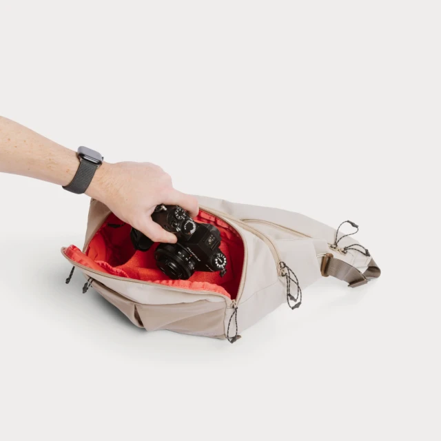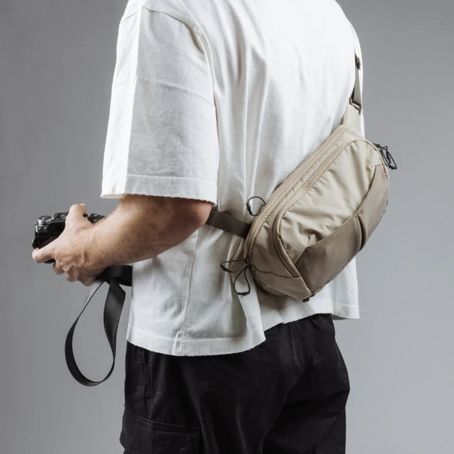 La Balance Sling es la bolsa ideal para la cámara, que puedes llevar directamente sobre el cuerpo, tanto si estás grabando mientras caminas como si simplemente sales a relajarte. Su forma ergonómica, con una capacidad de 7 litros, se adapta cómodamente a la espalda mientras te mueves y se puede colocar fácilmente en la parte delantera para acceder rápidamente al equipo.