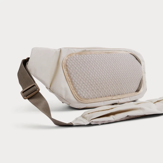 Diseñada para llevarla a la espalda, con la posibilidad de girarla rápidamente hacia delante como una bandolera. La correa desmontable se puede fijar a ambos lados, por lo que puedes elegir el lado que prefieras.