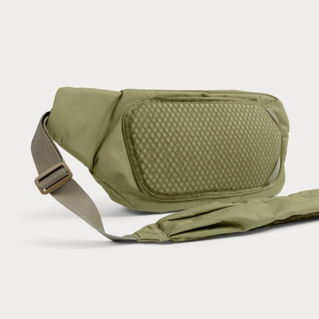 La correa incorpora un bolsillo tipo bandolera con un ligero acolchado y un clip independiente para que el teléfono, las llaves, los AirPods o los objetivos móviles estén siempre a mano.