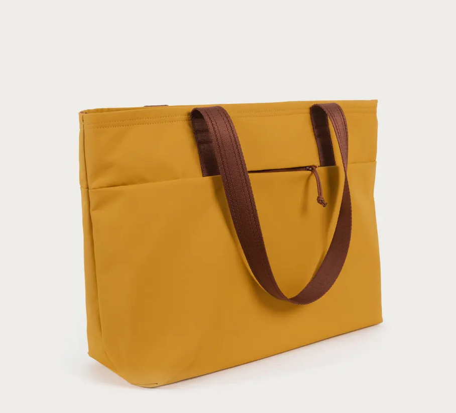 Una bolsa para ir al trabajo a cualquier lugar, para viajar a cualquier lugar. Esta bolsa es en parte de trabajo y en parte de viaje, y por eso es sencilla. Su tejido resistente e impermeable mantiene tu equipo protegido y la bolsa en buen estado. Los bolsillos específicos en el interior mantienen tus objetos pequeños organizados, el portátil protegido y la botella de agua en su sitio. Las correas, muy suaves, son resistentes y cómodas tanto en la mano como en el hombro, incluso si llevas una camiseta sin mangas. La base mínimamente acolchada ayuda a que la bolsa se mantenga erguida y, al mismo tiempo, conserva una sensación natural, a diferencia de otras bolsas técnicas excesivamente acolchadas. Esta es la bolsa elegante, cómoda y funcional que siempre hemos querido.