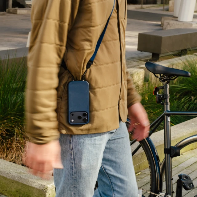 La correa se conecta directamente al punto de fijación integrado en cada funda Moment para iPhone 17 (excepto la versión Air), creando así una conexión directa con tu teléfono, no solo con la funda. Sin mosquetones de plástico ni puntos débiles, solo una sencilla correa de cordón que se pasa firmemente y se mantiene en su sitio sin importar lo activo que estés.