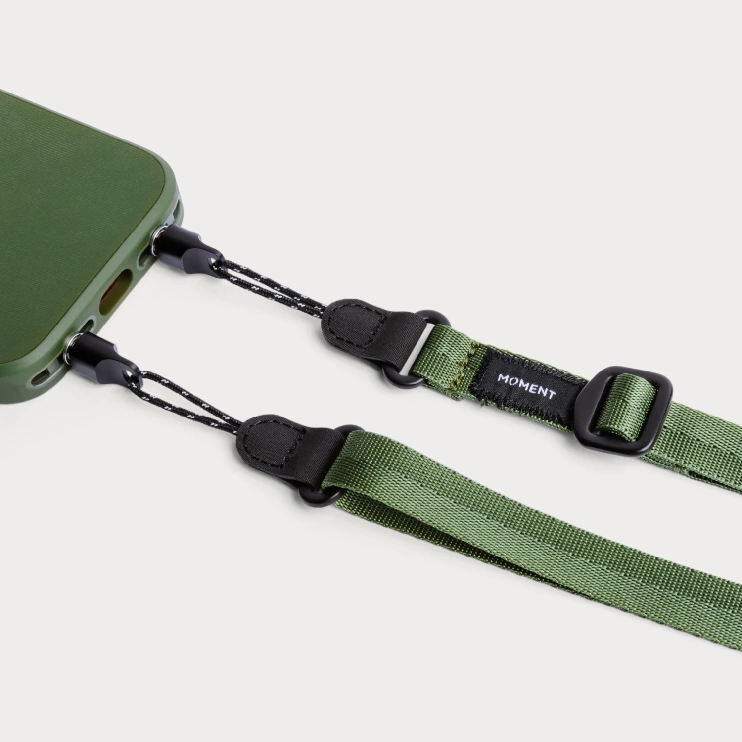 Las correas ajustables para el móvil de la marca Moment mantendrán tu móvil a mano y a salvo mientras haces fotos, vas al trabajo o simplemente das un paseo por la ciudad. Están fabricadas con una correa de nailon de calidad militar y componentes de aluminio resistentes, lo que las hace ligeras, resistentes y cómodas de llevar. Color: verde oliva.