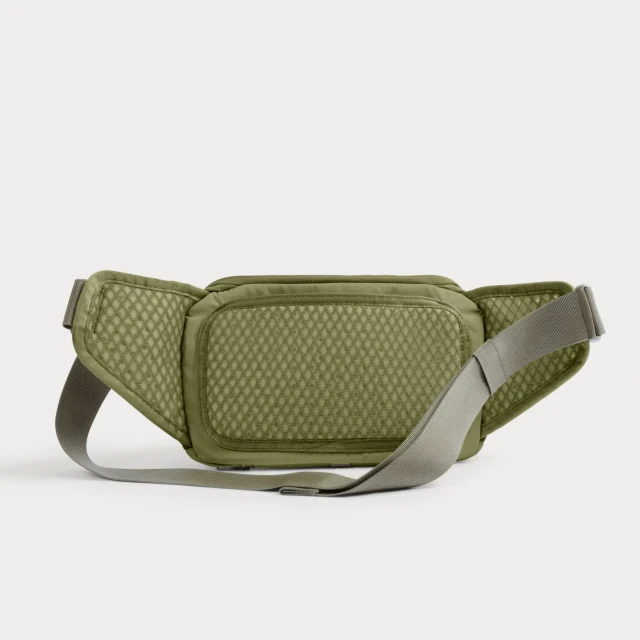 Diseñada como una riñonera de alta gama que también funciona de maravilla como bandolera. Su forma más ancha y sus «alas» acolchadas se ajustan al cuerpo y garantizan una gran comodidad.
