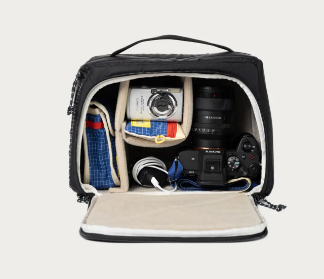 El compartimento para cámara Morro está diseñado para encajar a la perfección en la mochila Morro para un fin de semana largo, por lo que es el compañero ideal para cualquier aventura fotográfica. Gracias a su cremallera de apertura total, cargar y organizar el equipo es muy rápido y sencillo. Ambas solapas de acceso se deslizan dentro de las solapas de acceso de la mochila Morro y permiten acceder rápidamente a todo el equipo mediante una sola cremallera. Es un poco más profunda que muchas mochilas fotográficas compactas tipo cubo, por lo que puedes llevar en ella la mayoría de las cámaras analógicas de formato medio, objetivos adicionales y accesorios. Gracias a sus tejidos resistentes a la suciedad y a la intemperie, y a su cómoda asa de transporte, este forro para cámara puede acompañarte a cualquier parte.