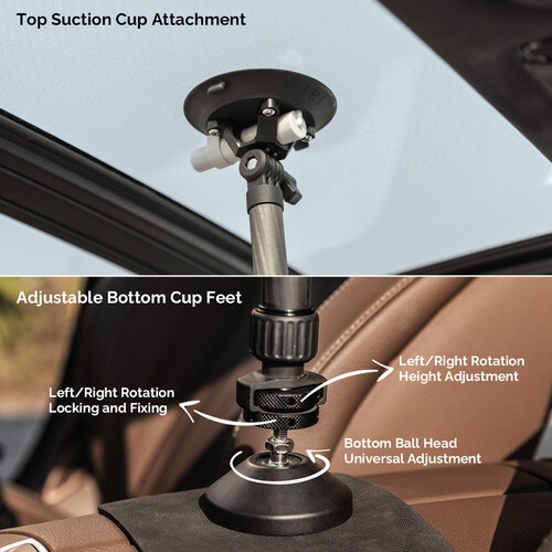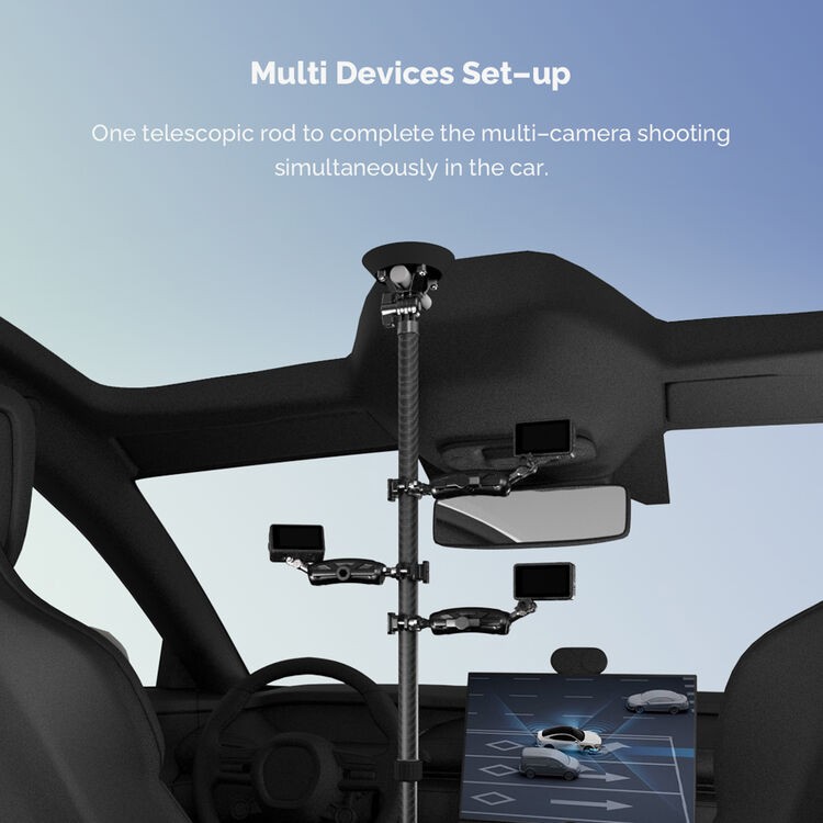 El soporte está fabricado en fibra de carbono de alta calidad, lo que garantiza resistencia y durabilidad con un peso mínimo. Es compatible con una amplia gama de accesorios para soportes, incluyendo rótulas, soportes para cámaras y otros componentes de filmación, lo que lo convierte en una herramienta flexible tanto para creadores de contenido como para cineastas. Ya sea que grabes vlogs de viajes, secuencias de acción o tomas cinematográficas desde el interior de un vehículo, esta barra telescópica ofrece una solución de sujeción fiable que es fácil de instalar y ajustar.