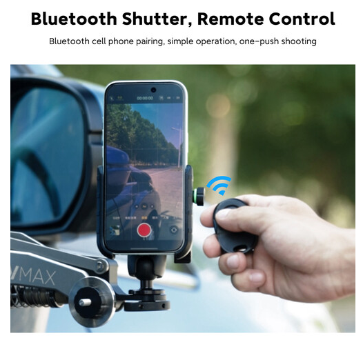 Mejora la creación de contenido desde el vehículo con la abrazadera MOVMAX Smartphone Clamp (modelo 86-0039), un soporte resistente diseñado para el brazo Blade Arm que sujeta con seguridad prácticamente cualquier smartphone de entre 2,4 y 3,5 pulgadas de ancho, ideal para iPhones, Android y dispositivos compactos— y, al mismo tiempo, permite grabar de forma dinámica y sin usar las manos desde el interior o el exterior del vehículo. La rótula integrada de 1 pulgada con rosca estándar de 1/4"-20 permite un giro de 360 grados y un control preciso de la inclinación, lo que permite cambiar fluidamente entre la orientación vertical y horizontal para un encuadre óptimo durante la conducción a alta velocidad. Las mordazas de la abrazadera están revestidas con una suave capa de silicona que evita arañazos y garantiza un agarre antideslizante incluso con vibraciones o frenadas bruscas. Una característica excepcional es el mando a distancia Bluetooth incluido, que se empareja inmediatamente con tu teléfono y te permite disparar fotos o iniciar/detener la grabación de vídeo desde el asiento del conductor o del copiloto, ideal para vloggers en solitario o creadores preocupados por la seguridad. Esta abrazadera, diseñada pensando en la resistencia y respaldada por una garantía limitada de un año, convierte el Blade Arm en un estudio móvil profesional para historias de coches, vlogs de viajes y secuencias de acción.