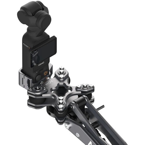 Aumenta la estabilidad del DJI Osmo Pocket 3 montado en un vehículo con el MOVMAX Vibration Isolator for Blade Arm, una abrazadera gris de aleación de aluminio y silicona que sujeta con seguridad la base del cardán sin rayarla y se integra perfectamente en el sistema Blade Arm para absorber las vibraciones de la carretera…